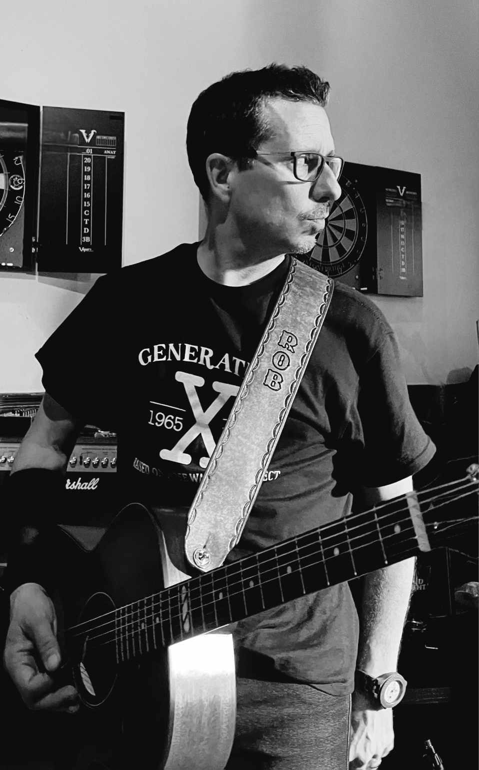 Born in Montreal, Quebec, Rob defines himself as a songwriter first and a performer second. He is the founding member of Desperate Executives, which has existed in different formats since 1992. Through the past 30+ years, he has taken on bass, drum and lead vocal duties at different times. To Rob, music should be both entertaining and meaningful, and he seeks to bring this belief to all the songs written and performedby the band.